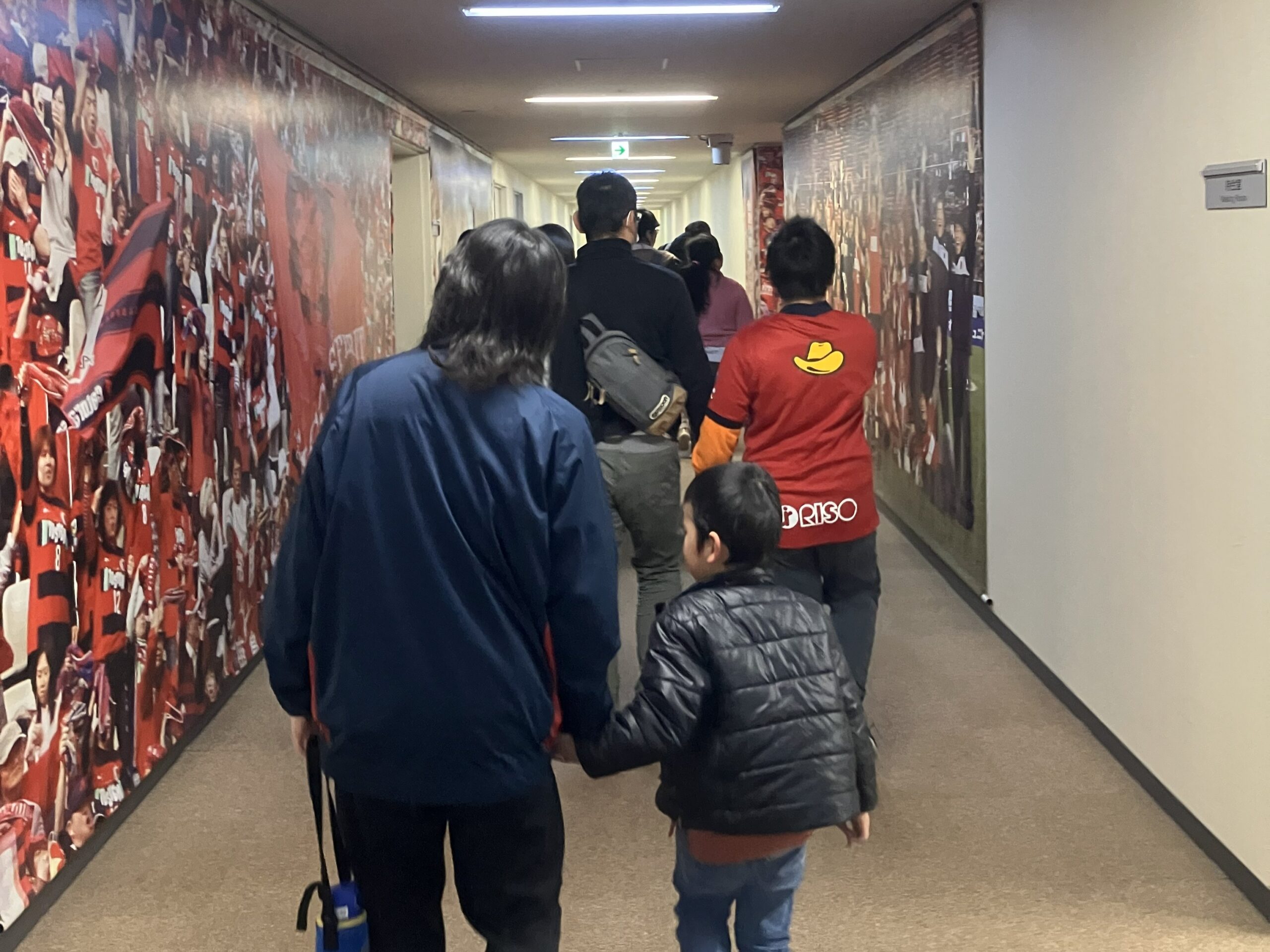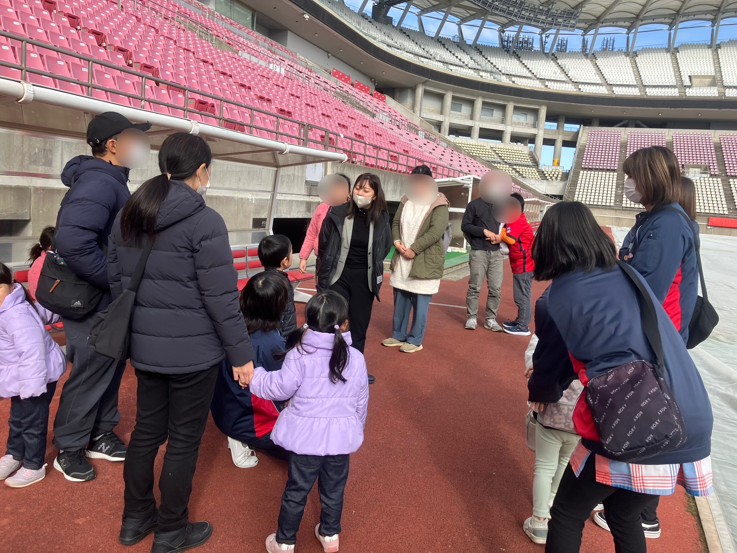 午前・午後の2部制で鹿行エリアの事業所のこどもたちと保護者の皆様にご参加いただき、総勢約175名が優勝の熱気が残るスタジアムを探検しました。