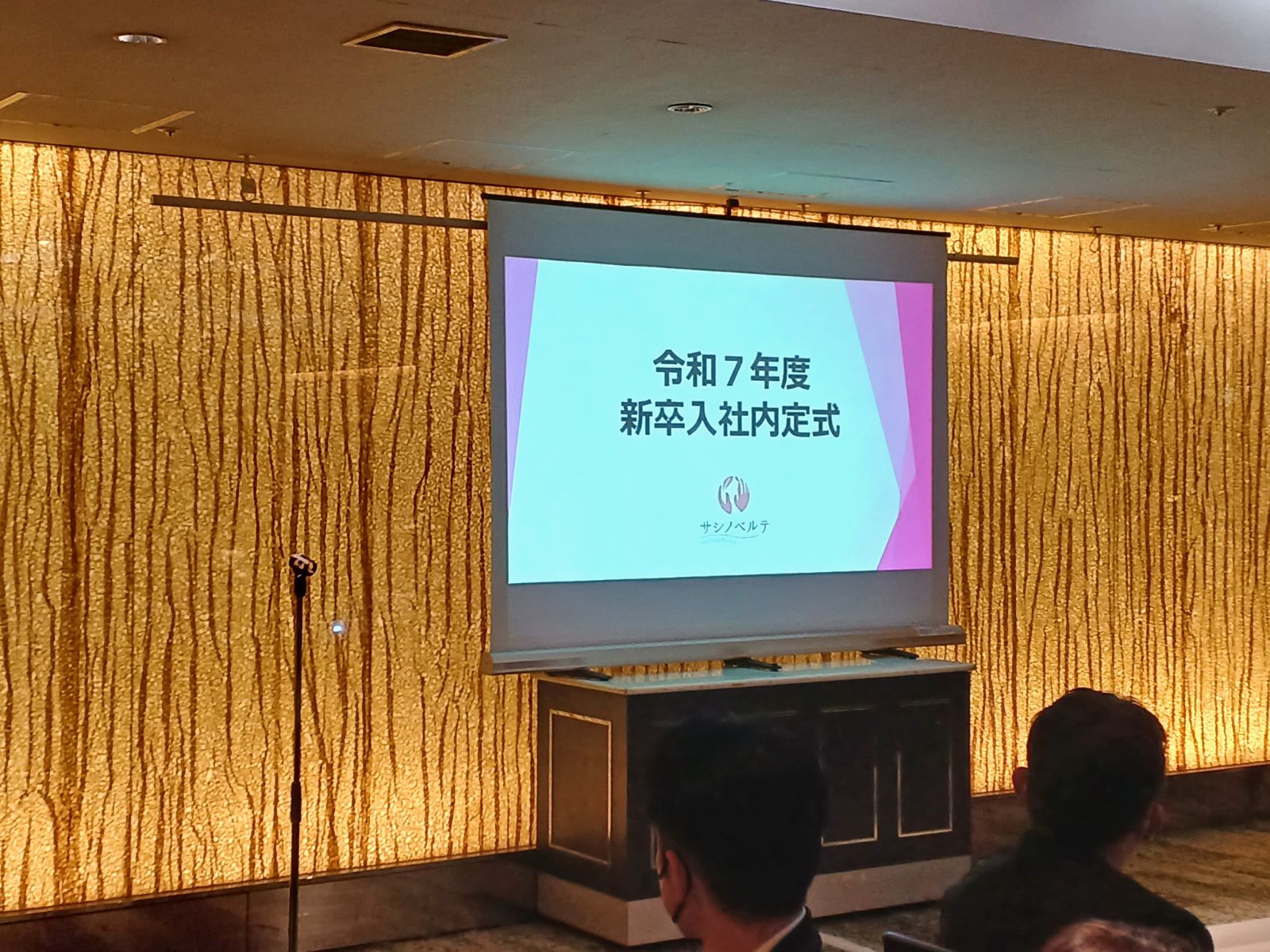 会議の前に、2026年度に入社予定となる6名の新卒入社内定式も行われました。社長から内定証書が授与された後、内定者には1分間の自己紹介スピーチをお願いしました。緊張した面持ちの中でも、言葉の端々から感じられる希望や熱意に職員一同も感化され、和やかに会がスタートしました。