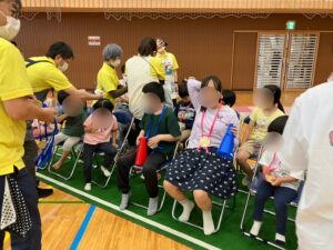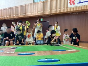 試合中は着席して順番を待つだけでなく、敵のチームも応援しあう場面もあり、「ルールの理解」だけでなく「社会性」の獲得の場となります。